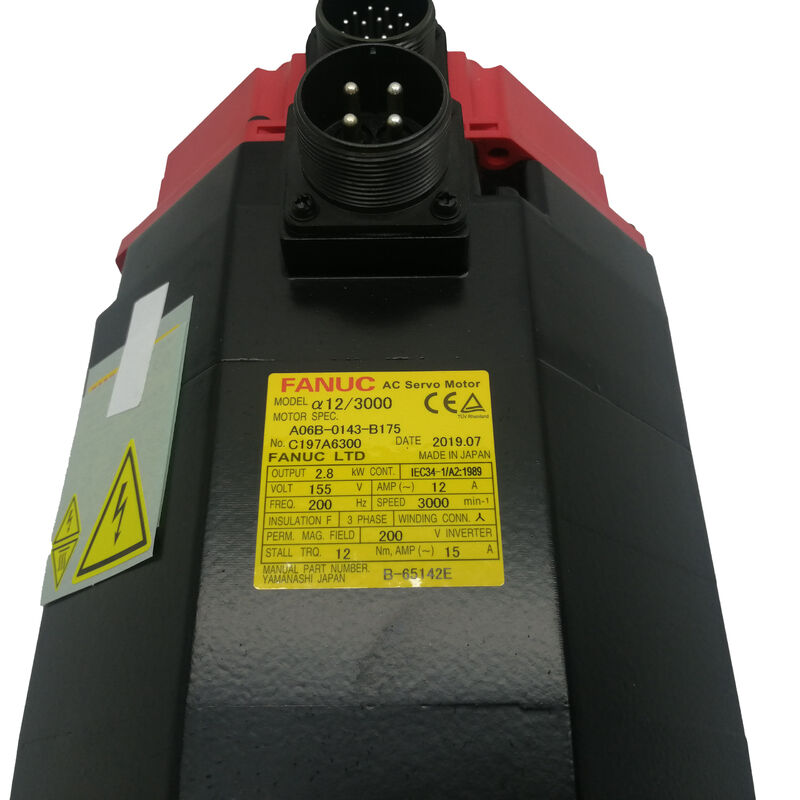 محرك السيرفو AC من سلسلة ألفا، موديل α12/3000، بتكوين B175 المزود بفرامل.بقدرة 2.8 كيلو واط، وعزم دوران عند التوقف يبلغ 12 نيوتن متر، وسرعة قصوى تبلغ 3000 دورة في الدقيقة، ويعمل بجهد 155 فولت ثلاثي الأطوار، وتيار مقنن يبلغ 12 أمبير عند 200 هرتز، يعد هذا أحد أكثر المحركات شيوعًا في جيل فانووك ألفا.إنه يجمع بين فئة عزم الدوران التي جعلت α12 المحرك الرئيسي القياسي في مراكز التشغيل CNC الصغيرة والمتوسطة الحجم، مع فرامل تعمل بالزنبرك بجهد DC 90 فولت التي تتطلبها أي محور محمل بالجاذبية، ومشفر مطلق A64 الذي يلغي الحاجة إلى العودة إلى نقطة الصفر عند كل بدء تشغيل.